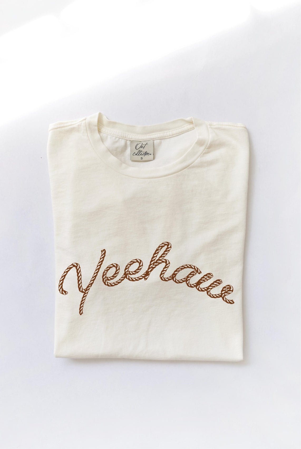Get ready to wrangle up some fun in our YeeHaw Graphic Tee! In a creamy neutral color, this tee features a unique rope lettering design for a playful twist. Whether you're hitting the town, a concert, or a rodeo, this tee is sure to lasso in compliments.