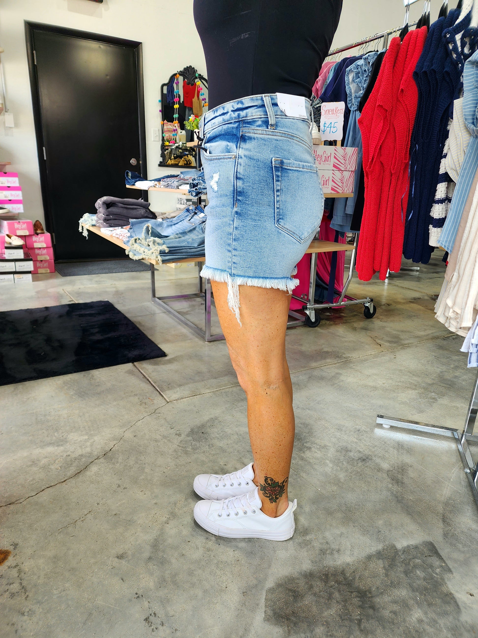 These Zenana Raw Frayed Hem Ripped Denim Shorts offer a stylish mid-rise fit and medium blue denim color. The raw frayed hem and subtle distressing add a touch of edge to any outfit. Made from high-quality materials, they are comfortable and durable for everyday wear. Upgrade your denim game today.